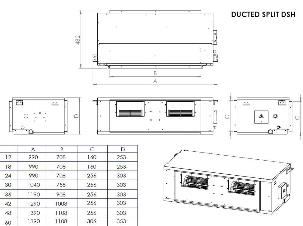 مشخصات فنی یونیت داخلی داکت اسپلیت مدل DSH